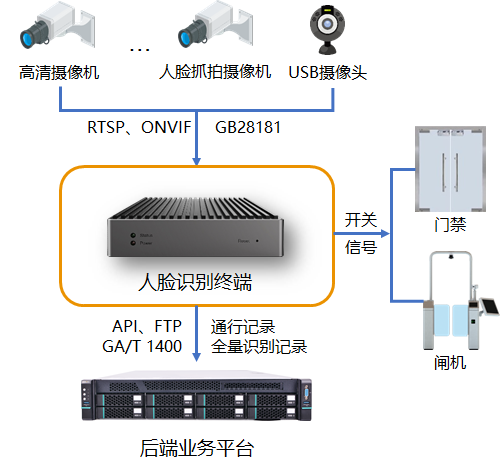 采用人臉識別和訪客機(jī)的方式,通過門口攝像機(jī)采集的人臉信息,跟系統(tǒng)中的人臉庫做比對,判斷來訪者是否有進(jìn)出權(quán)限,并結(jié)合傳統(tǒng)的門禁識別方式,控制門鎖的開關(guān),從而方便人員通行,提高服務(wù)質(zhì)量。業(yè)務(wù)需要的情況下,可以在人臉識別的同時,記錄考勤信息,生成考勤報表。
