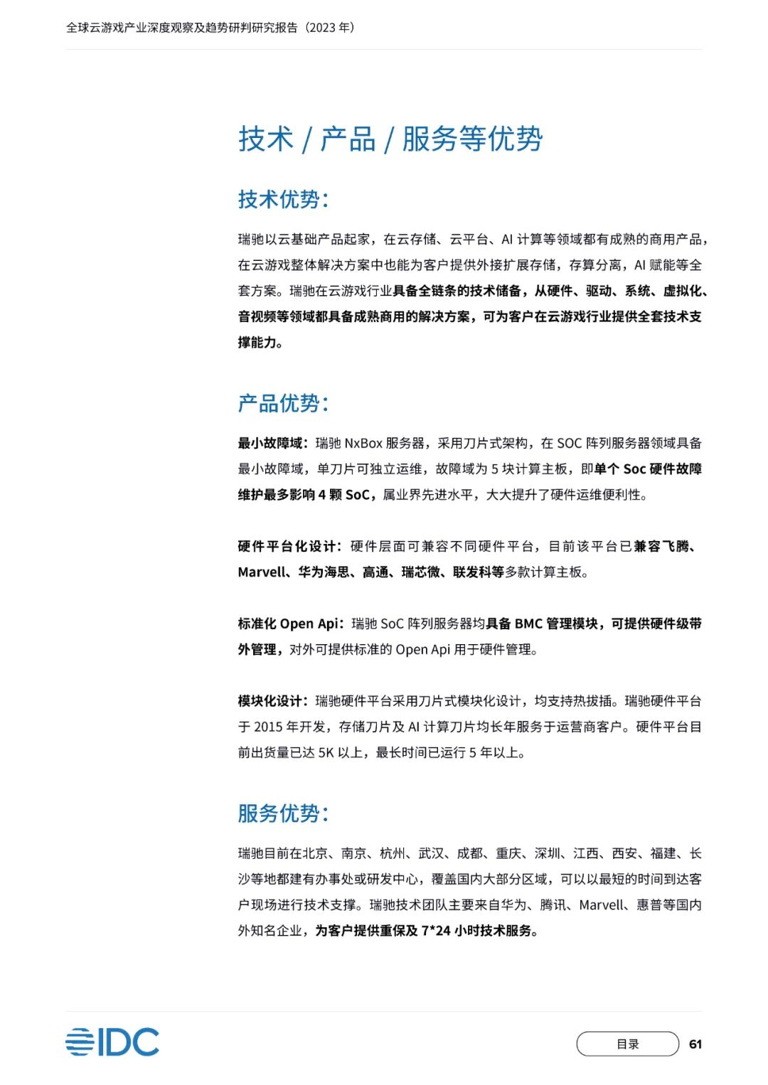 IDC聯(lián)合信通院發(fā)布云游戲報(bào)告 | 瑞馳自研SoC算力平臺獲高度認(rèn)可